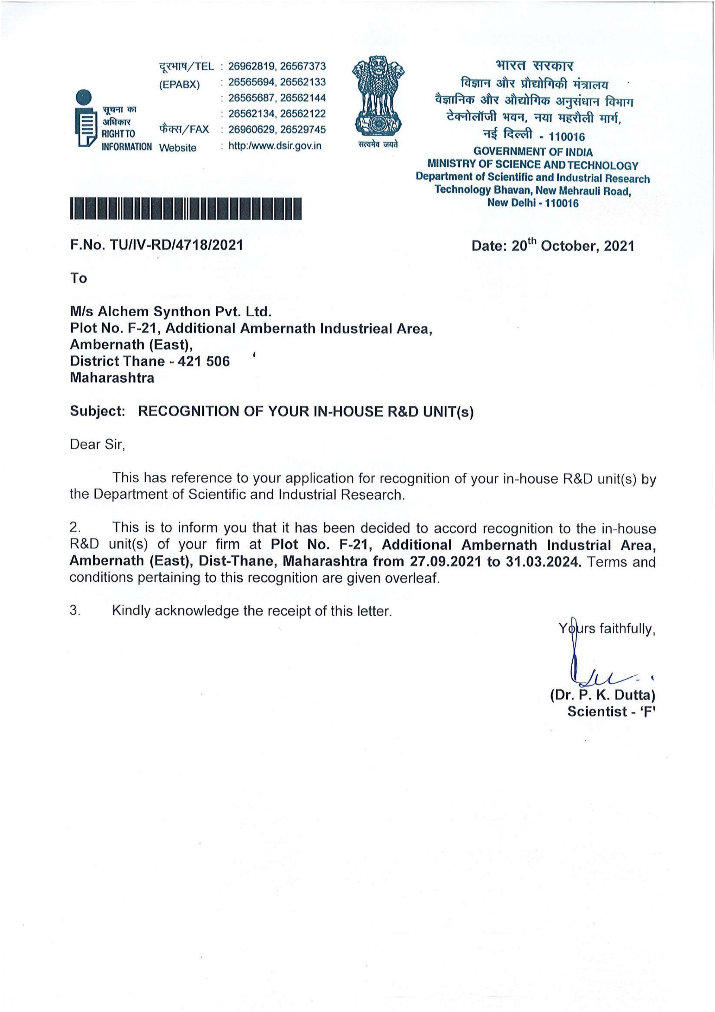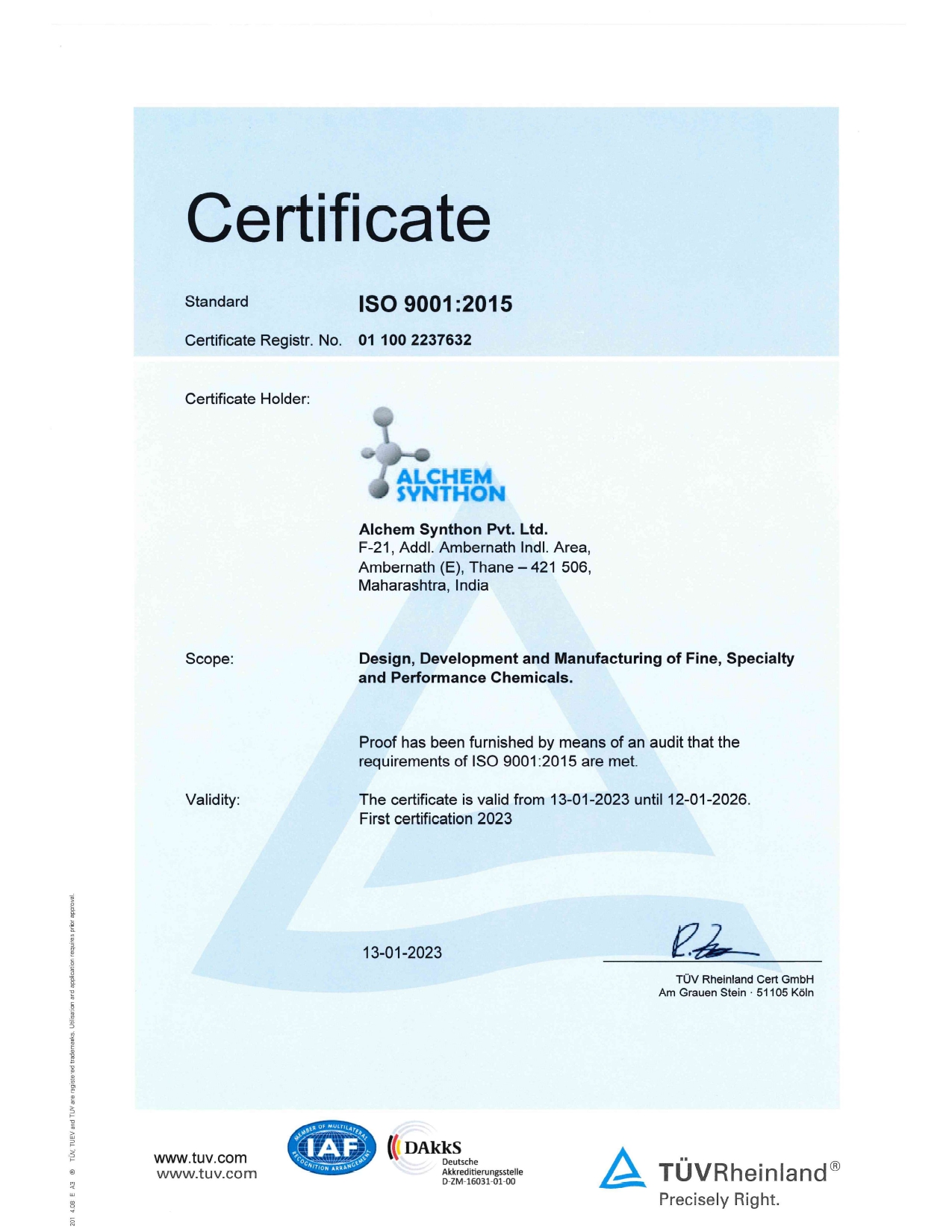 Alchem Synthon is committed to Research & Development through design of novel, techno-commercially viable and environmentally benign processes to manufacture Fine, Specialty and Performance Chemicals & Chemical Intermediates that meet our customer expectations & applicable regulatory requirements.